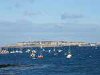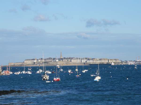 | Saint Malo depuis Dinard Dinard est séparé de St Malo Par l'estuaire de la Rance. Les liaisons entre les deux villes peuvent se faire soit par bateau ou par route en empruntant le barrage de la Rance La vue depuis Dinard permet de découvrir l'ensemble de l'intra et l'alignement de ses façades Pour un malouin, Dinard se trouve "de l'autre coté de l'eau" |