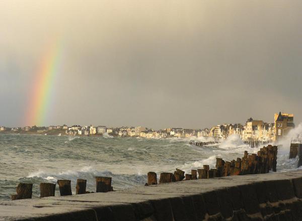 | Saint Malo - Le Sillon Sur cette dune reliant St Malo à Paramé, s'est constituée à la fin du 19ème siècle une cité balnéaire. Outre de nombreuses villas, elle comprenaient des thermes, un casino, une liaison ferroviaire... Paramé, St Servan et Rothéneuf ont fusionné avec St Malo en 1967 |