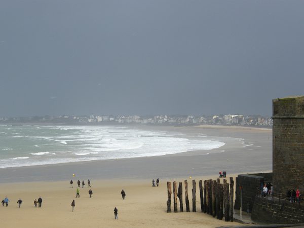 | Les marées Si les vagues envahissent le sillon à marée haute, il faut en contrepartie faire une petit effort pour aller se tremper les pieds à marée basse. En effet la baie de St Malo se vante d'accueillir les plus grandes marées d'Europe. Le marnage (différence entre la marée haute et la marée basse) peut y atteindre une hauteur de 13m. La construction de l'usine marémotrice sur la Rance n'est pas due au hasard |