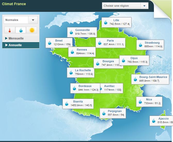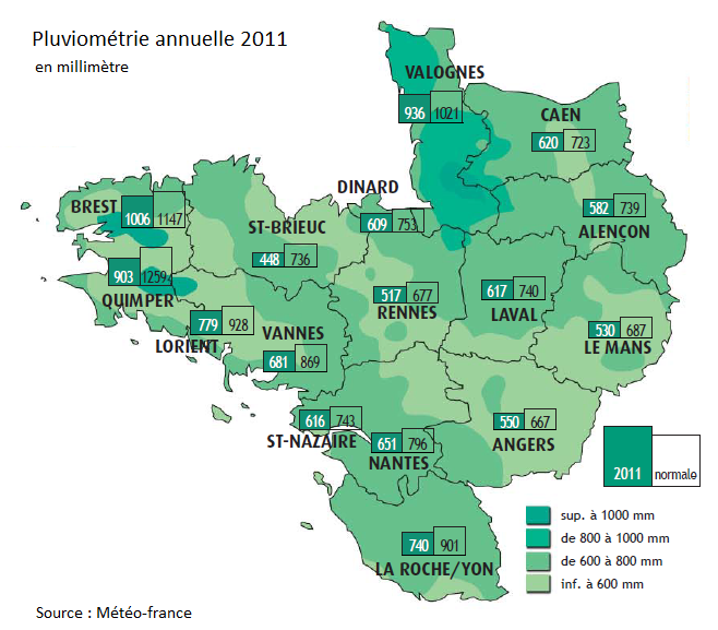 Si l'on se reporte à la carte nationale, la région de Rennes est loin d'être la plus pluvieuse
